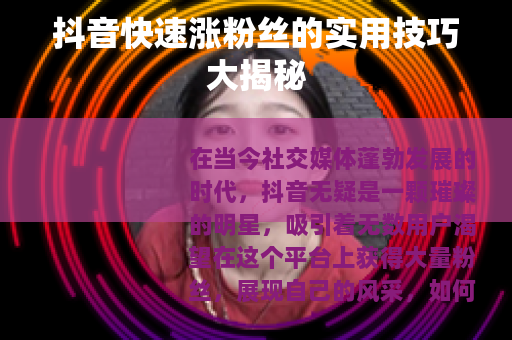 在当今社交媒体蓬勃发展的时代,抖音无疑是一颗璀璨的明星,吸引着无数用户渴望在这个平台上获得大量粉丝,展现自己的风采,如何才能在抖音上实现快速涨粉呢?以下是一些经过实践验证的实用技巧,助您在抖音的世界里脱颖而出。