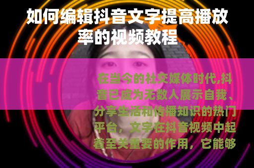 在当今的社交媒体时代,抖音已成为无数人展示自我、分享生活和传播知识的热门平台,文字在抖音视频中起着至关重要的作用,它能够吸引观众的注意力、传达关键信息并引发情感共鸣,从而有效提高视频的播放率,以下是一份关于如何编辑抖音文字以提高播放率的详细视频教程。