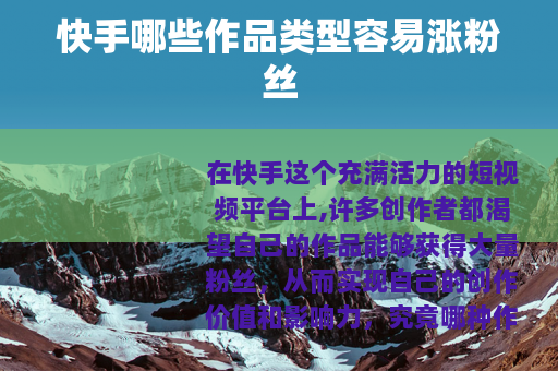 在快手这个充满活力的短视频平台上,许多创作者都渴望自己的作品能够获得大量粉丝,从而实现自己的创作价值和影响力,究竟哪种作品容易在快手上涨粉丝呢?