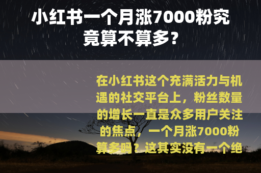在小红书这个充满活力与机遇的社交平台上,粉丝数量的增长一直是众多用户关注的焦点,一个月涨7000粉算多吗?这其实没有一个绝对的标准,需要从多个角度来分析。