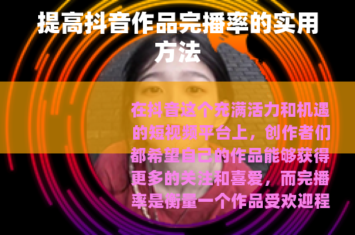 在抖音这个充满活力和机遇的短视频平台上,创作者们都希望自己的作品能够获得更多的关注和喜爱,而完播率是衡量一个作品受欢迎程度的重要指标之一,抖音作品的完播率究竟该如何提高呢?以下是一些实用的方法。 的吸引力至关重要,要确保你的视频内容具有趣味性、实用性或独特性,如果你擅长烹饪,可以制作一些独特的美食制作教程,从食材的选择到烹饪的技巧,详细地展示给观众,让他们在观看过程中能够学到新知识,从而更愿意完整地看完视频,或者,你可以分享一些有趣的生活小趣事、搞笑段子等,让观众在忙碌的生活中能够通过你的视频获得快乐和放松,这样他们就会更有动力把视频看完。