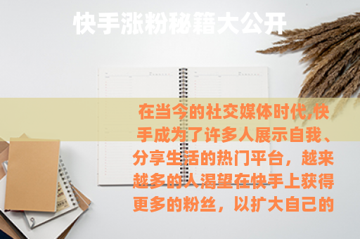 想要在快手上涨粉丝,需要不断努力和尝试,从内容创作、视频质量、发布时间、互动以及利用平台功能等多方面入手,持续优化和提升自己的快手运营策略,这样才能吸引到更多的粉丝关注,在快手上实现自己的目标和价值。 对您有所帮助,您可以根据实际情况进行调整和修改,如果您还有其他问题,欢迎继续向我提问。