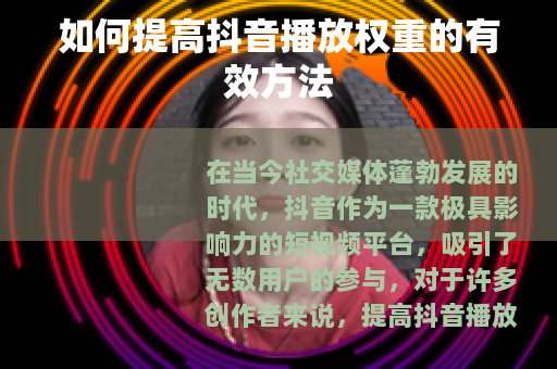 在当今社交媒体蓬勃发展的时代,抖音作为一款极具影响力的短视频平台,吸引了无数用户的参与,对于许多创作者来说,提高抖音播放权重是实现内容广泛传播和账号发展的关键所在,以下是一些能够帮助你提高抖音播放权重的实用方法。 质量是重中之重,确保你的视频内容具有独特性、趣味性和实用性,独特的内容能够在海量的视频中脱颖而出,吸引用户的关注,你可以分享自己的专业知识、独特的生活经历或创意的才艺表演等,趣味性的视频能够让用户在观看过程中产生愉悦的感受,从而更愿意停留和互动,实用性的内容则能满足用户的某种需求,如提供生活小妙招、学习技巧等,这样的视频往往会被用户收藏和分享,进而提高播放权重。