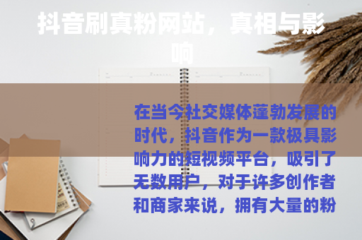 在当今社交媒体蓬勃发展的时代,抖音作为一款极具影响力的短视频平台,吸引了无数用户,对于许多创作者和商家来说,拥有大量的粉丝是实现商业价值和传播影响力的关键,这也催生了一些所谓的“抖音刷真粉网站”,声称可以帮助用户快速增加粉丝数量,但其背后却隐藏着诸多问题。