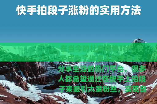 在当今的社交媒体时代,快手成为了许多人展示自我、分享生活的热门平台,很多人都希望通过在快手上拍段子来吸引大量粉丝,实现自己的影响力提升和个人价值的展现,快手不知道拍段子怎么涨粉丝该怎么办呢?下面就为大家介绍一些实用的方法。