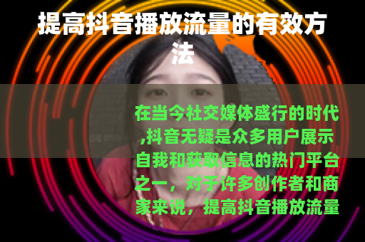 在当今社交媒体盛行的时代,抖音无疑是众多用户展示自我和获取信息的热门平台之一,对于许多创作者和商家来说,提高抖音播放流量是他们共同追求的目标,究竟该如何提高抖音播放流量呢?以下是一些实用的方法。 质量是关键,确保你的视频内容具有独特性、趣味性和实用性,独特的创意能够吸引用户的注意力,让他们在众多视频中选择观看你的作品,有趣的内容可以引发用户的共鸣和笑声,增加他们的观看时长和分享欲望,而实用性强的视频则能为用户提供有价值的信息,使他们觉得观看你的视频是有收获的,从而更愿意关注你的账号并持续观看你的其他作品。