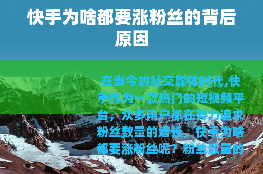 在当今的社交媒体时代,快手作为一款热门的短视频平台,众多用户都在努力追求粉丝数量的增长,快手为啥都要涨粉丝呢?