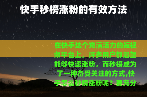 在快手这个充满活力的短视频平台上,许多用户都渴望能够快速涨粉,而秒榜成为了一种备受关注的方式,快手怎么秒榜涨粉呢?