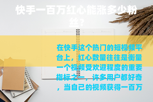 在快手这个热门的短视频平台上,红心数量往往是衡量一个视频受欢迎程度的重要指标之一,许多用户都好奇,当自己的视频获得一百万红心时,究竟能涨多少粉丝呢?