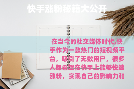在当今的社交媒体时代,快手作为一款热门的短视频平台,吸引了无数用户,很多人都希望在快手上能够快速涨粉,实现自己的影响力和价值,到底咋样让快手涨粉快呢?以下是一些实用的方法。