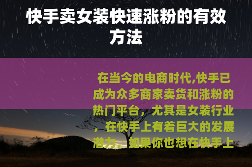 在当今的电商时代,快手已成为众多商家卖货和涨粉的热门平台,尤其是女装行业,在快手上有着巨大的发展潜力,如果你也想在快手上通过卖女装实现涨粉,以下是一些实用的方法。