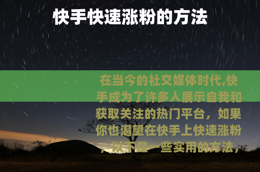 在当今的社交媒体时代,快手成为了许多人展示自我和获取关注的热门平台,如果你也渴望在快手上快速涨粉,以下是一些实用的方法。