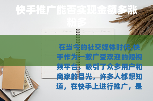 在当今的社交媒体时代,快手作为一款广受欢迎的短视频平台,吸引了众多用户和商家的目光,许多人都想知道,在快手上进行推广,是否真的能够实现金额多涨粉多的效果呢?