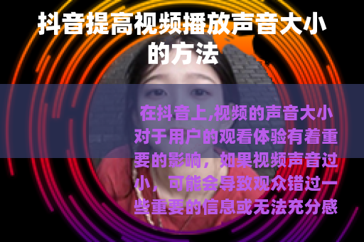 通过以上这些方法,就可以有效地提高抖音视频的播放声音大小,为观众带来更好的观看体验,让你的抖音视频更具吸引力和影响力。