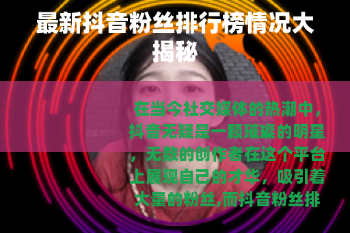 众多用户都好奇哪些创作者在抖音上拥有着庞大的粉丝群体,以及他们是如何做到的,通过对抖音粉丝排行榜最近的分析,我们可以发现一些有趣的趋势,一些娱乐领域的明星凭借着自身的知名度和精彩的短视频内容,在排行榜上占据着显著的位置,他们通过分享自己的生活点滴、工作花絮等,与粉丝们建立了紧密的联系,从而吸引了大量的关注和粉丝。