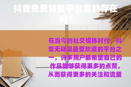 在当今的社交媒体时代,抖音无疑是最受欢迎的平台之一,许多用户都希望自己的作品能够获得更多的点赞,从而获得更多的关注和流量,一些所谓的“抖音免费领赞平台”开始在网络上出现,吸引了不少人的目光。