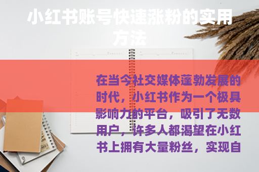 在当今社交媒体蓬勃发展的时代,小红书作为一个极具影响力的平台,吸引了无数用户,许多人都渴望在小红书上拥有大量粉丝,实现自己的社交价值和商业目标,小红书账号如何快速涨粉呢?以下是一些实用的方法。