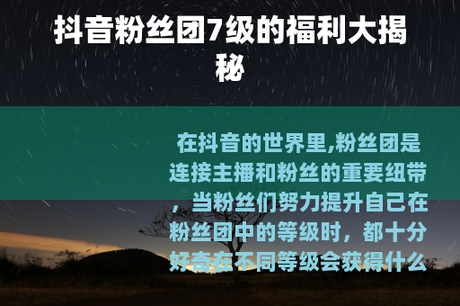 在抖音的世界里,粉丝团是连接主播和粉丝的重要纽带,当粉丝们努力提升自己在粉丝团中的等级时,都十分好奇在不同等级会获得什么样的特殊福利,我们就来详细了解一下抖音粉丝团7级会送什么。