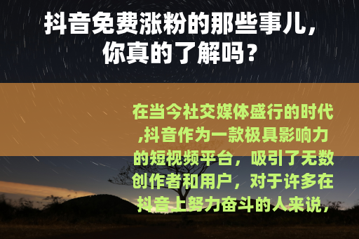 在当今社交媒体盛行的时代,抖音作为一款极具影响力的短视频平台,吸引了无数创作者和用户,对于许多在抖音上努力奋斗的人来说,粉丝量的增长是他们梦寐以求的目标,而“抖音刷赞神器免费涨粉”这样的说法,也在一些角落里悄然流传。