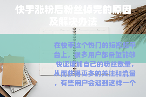 快手涨粉后粉丝掉完是一个需要引起重视的问题,但只要我们找到原因,并采取相应的措施加以解决,就能够重新吸引粉丝,让自己的账号在快手上获得更好的发展。