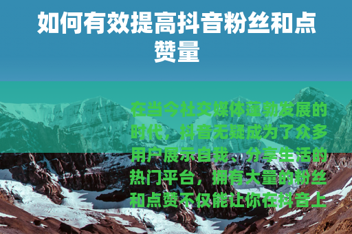 在当今社交媒体蓬勃发展的时代,抖音无疑成为了众多用户展示自我、分享生活的热门平台,拥有大量的粉丝和点赞不仅能让你在抖音上获得更多的关注和认可,还可能为你带来各种机会,如何提高抖音粉丝和点赞量呢?以下是一些实用的方法。