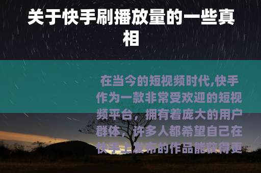 在当今的短视频时代,快手作为一款非常受欢迎的短视频平台,拥有着庞大的用户群体,许多人都希望自己在快手上发布的作品能获得更多的播放量,从而提高自己的知名度和影响力,一些所谓的“快手刷播放免费网址”开始在网络上流传。