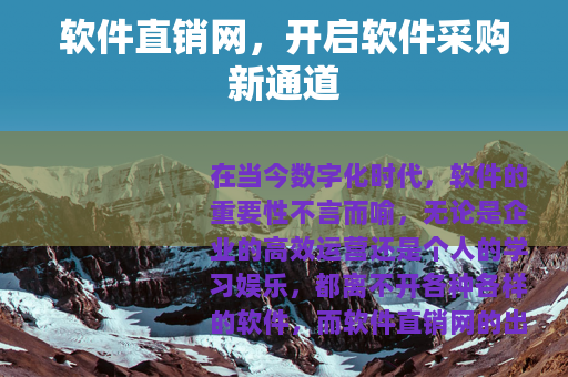 在当今数字化时代,软件的重要性不言而喻,无论是企业的高效运营还是个人的学习娱乐,都离不开各种各样的软件,而软件直销网的出现,为广大用户提供了一个便捷、高效且具有诸多优势的软件采购平台。