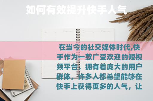 提升刷快手人气需要多方面的努力和策略,通过不断优化内容质量、提高制作技巧、利用平台功能以及积极互动,就能够在快手上获得更多的关注和人气,让自己的短视频之旅更加精彩。