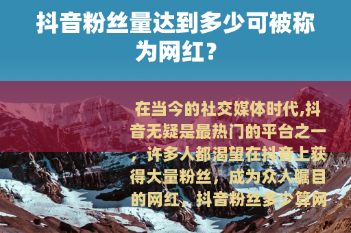 在当今的社交媒体时代,抖音无疑是最热门的平台之一,许多人都渴望在抖音上获得大量粉丝,成为众人瞩目的网红,抖音粉丝多少算网红呢?