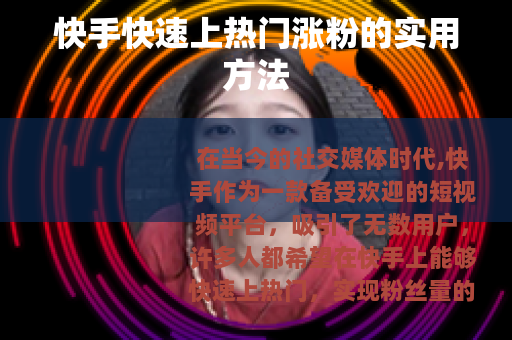 在当今的社交媒体时代,快手作为一款备受欢迎的短视频平台,吸引了无数用户,许多人都希望在快手上能够快速上热门,实现粉丝量的快速增长,以下是一些有效的方法,可以帮助你在快手上达成这一目标。 是关键,要确保你的视频内容具有独特性和吸引力,可以从自身的兴趣爱好、特长或生活中的有趣经历出发,制作出与众不同的视频,如果你擅长烹饪,那么可以制作一系列精美的美食制作视频,详细展示每一个步骤和独特的烹饪技巧,让观众在观看过程中不仅能够学到东西,还能感受到美食的魅力。