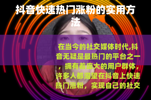 在当今的社交媒体时代,抖音无疑是最热门的平台之一,拥有着庞大的用户群体,许多人都渴望在抖音上快速热门涨粉,实现自己的社交影响力和商业价值,以下是一些抖音快速热门涨粉的有效方法。 创作是关键,要确保你的视频内容具有独特性和吸引力,可以从自身的兴趣、特长出发,挖掘出与众不同的主题,如果你擅长烹饪,那就可以制作各种精美的美食制作视频,详细展示烹饪过程和独特的技巧,让观众在观看中既能学到知识,又能感受到美食的魅力,要注意视频的趣味性,通过幽默的语言、搞笑的情节或者新奇的创意来吸引用户的关注,让他们在观看后有分享的欲望。