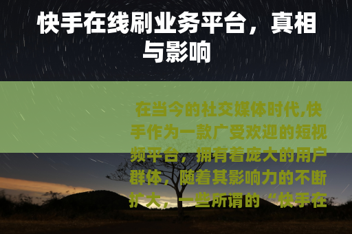 在当今的社交媒体时代,快手作为一款广受欢迎的短视频平台,拥有着庞大的用户群体,随着其影响力的不断扩大,一些所谓的“快手在线刷业务平台”也应运而生。