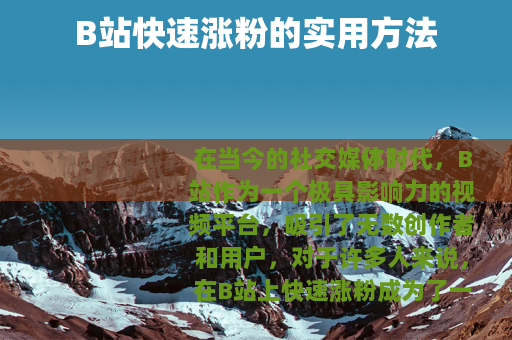 在当今的社交媒体时代,B站作为一个极具影响力的视频平台,吸引了无数创作者和用户,对于许多人来说,在B站上快速涨粉成为了一个重要的目标,究竟有哪些方法可以帮助我们在B站快速涨粉呢? 质量是关键,要想吸引粉丝,就必须提供有价值、有趣、有特色的视频内容,这意味着你需要深入了解自己的目标受众,明确他们的兴趣和需求,然后根据这些来创作视频,如果你发现你的受众对游戏攻略感兴趣,那么你就可以制作详细且独特的游戏攻略视频,通过清晰的讲解和精彩的操作展示,让观众在观看你的视频后能够有所收获,从而增加他们对你的认可度和忠诚度。