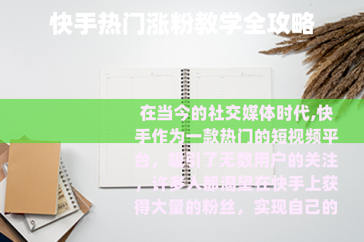 在当今的社交媒体时代,快手作为一款热门的短视频平台,吸引了无数用户的关注,许多人都渴望在快手上获得大量的粉丝,实现自己的社交价值和影响力,就为大家带来一份全面的快手热门涨粉教学。