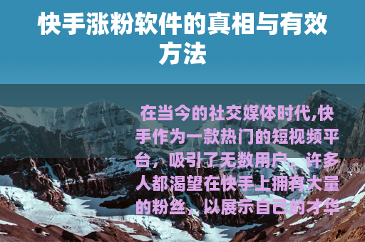 在当今的社交媒体时代,快手作为一款热门的短视频平台,吸引了无数用户,许多人都渴望在快手上拥有大量的粉丝,以展示自己的才华或推广自己的产品与服务,关于快手怎么涨粉丝的话题备受关注,其中快手涨粉丝软件也成为了不少人热议的焦点。