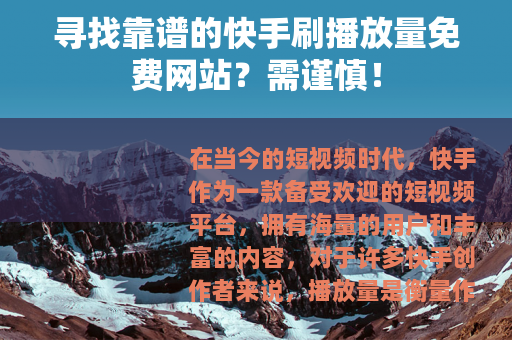 在当今的短视频时代,快手作为一款备受欢迎的短视频平台,拥有海量的用户和丰富的内容,对于许多快手创作者来说,播放量是衡量作品受欢迎程度的重要指标之一,一些人开始寻找所谓的“快手刷播放量免费网站”,希望能够快速提升自己作品的曝光度和人气,在这个过程中,我们需要保持理性和谨慎,避免陷入不必要的麻烦。
