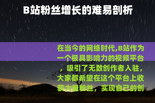 在当今的网络时代,B站作为一个极具影响力的视频平台,吸引了无数创作者入驻,大家都希望在这个平台上收获大量粉丝,实现自己的创作价值,B站粉丝难涨吗?这是许多创作者心中的疑问。