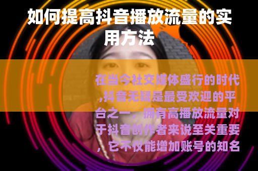 在当今社交媒体盛行的时代,抖音无疑是最受欢迎的平台之一,拥有高播放流量对于抖音创作者来说至关重要,它不仅能增加账号的知名度,还能带来更多的粉丝和商业机会,如何提高抖音播放流量呢?以下是一些实用的方法。 质量是关键,要确保你的视频内容有创意、有趣且富有价值,可以从用户的兴趣点出发,挖掘热门话题,并以独特的视角进行呈现,如果你擅长烹饪,那么可以制作一系列独特的美食制作视频,展示一些新颖的食谱或独特的烹饪技巧,让观众在观看过程中能够学到新知识,从而吸引他们的关注并促使他们分享你的视频。