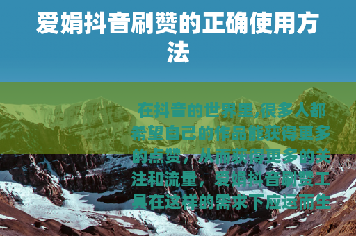 在抖音的世界里,很多人都希望自己的作品能获得更多的点赞,从而获得更多的关注和流量,爱娟抖音刷赞工具在这样的需求下应运而生。