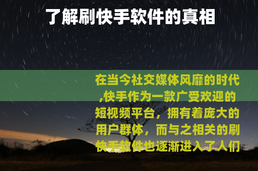 在当今社交媒体风靡的时代,快手作为一款广受欢迎的短视频平台,拥有着庞大的用户群体,而与之相关的刷快手软件也逐渐进入了人们的视野。