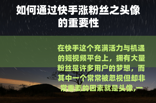 在快手这个充满活力与机遇的短视频平台上,拥有大量粉丝是许多用户的梦想,而其中一个常常被忽视但却非常重要的因素就是头像,一个合适的头像对于在快手上涨粉丝有着不可小觑的作用。