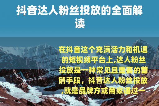 在抖音这个充满活力和机遇的短视频平台上,达人粉丝投放是一种常见且重要的营销手段。