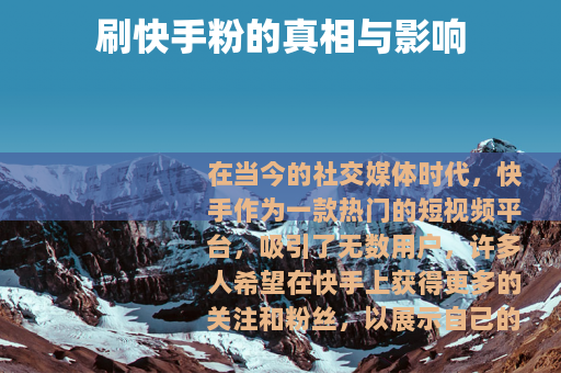 在当今的社交媒体时代,快手作为一款热门的短视频平台,吸引了无数用户,许多人希望在快手上获得更多的关注和粉丝,以展示自己的才华或推广自己的业务,有一种现象逐渐兴起,那就是刷快手粉。