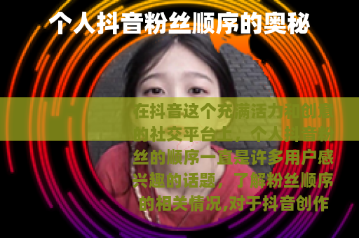个人抖音粉丝顺序虽然看似只是一个小小的细节,但它背后却蕴含着丰富的信息和价值,通过深入了解和利用这些信息,抖音创作者们可以在这个充满机遇的平台上更好地发展自己,与粉丝们建立更紧密、更有活力的关系,实现自己的创作目标和价值。