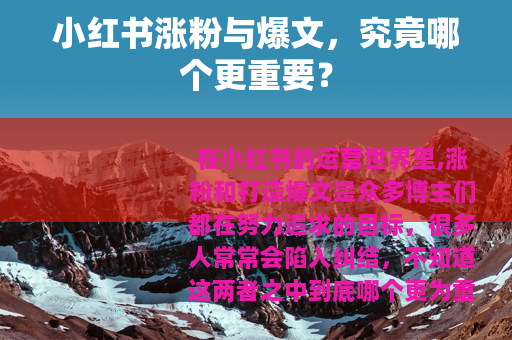 在小红书的运营世界里,涨粉和打造爆文是众多博主们都在努力追求的目标,很多人常常会陷入纠结,不知道这两者之中到底哪个更为重要。