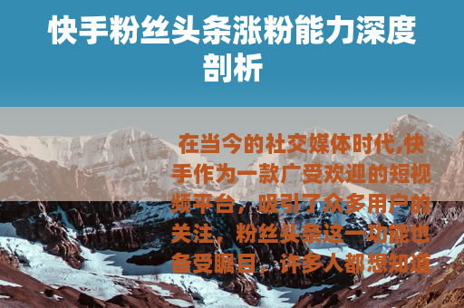 在当今的社交媒体时代,快手作为一款广受欢迎的短视频平台,吸引了众多用户的关注,粉丝头条这一功能也备受瞩目,许多人都想知道它的涨粉能力究竟怎么样。