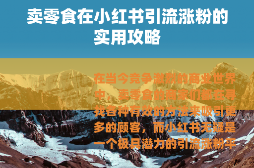 在当今竞争激烈的商业世界中,卖零食的商家们都在寻找各种有效的方法来吸引更多的顾客,而小红书无疑是一个极具潜力的引流涨粉平台,以下是一些卖零食通过小红书引流涨粉的有效策略。