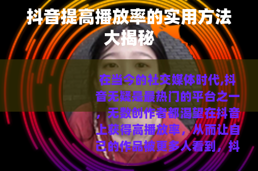 要想在抖音上提高播放率,需要从多个方面入手,不断优化自己的视频内容和运营策略,才能让自己的作品在抖音的海量视频中脱颖而出,获得更多的关注和播放量。