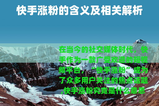 在当今的社交媒体时代,快手作为一款广受欢迎的短视频平台,“快手涨粉”成为了众多用户关注的焦点话题,快手涨粉究竟是什么意思呢?