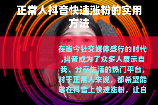 正常人想要在抖音上快速涨粉,需要在内容创作、视频质量、功能利用、互动以及发布频率等多方面下功夫,只要坚持不懈地努力,不断学习和改进,相信你一定能够在抖音上收获大量的粉丝,实现自己的社交目标。